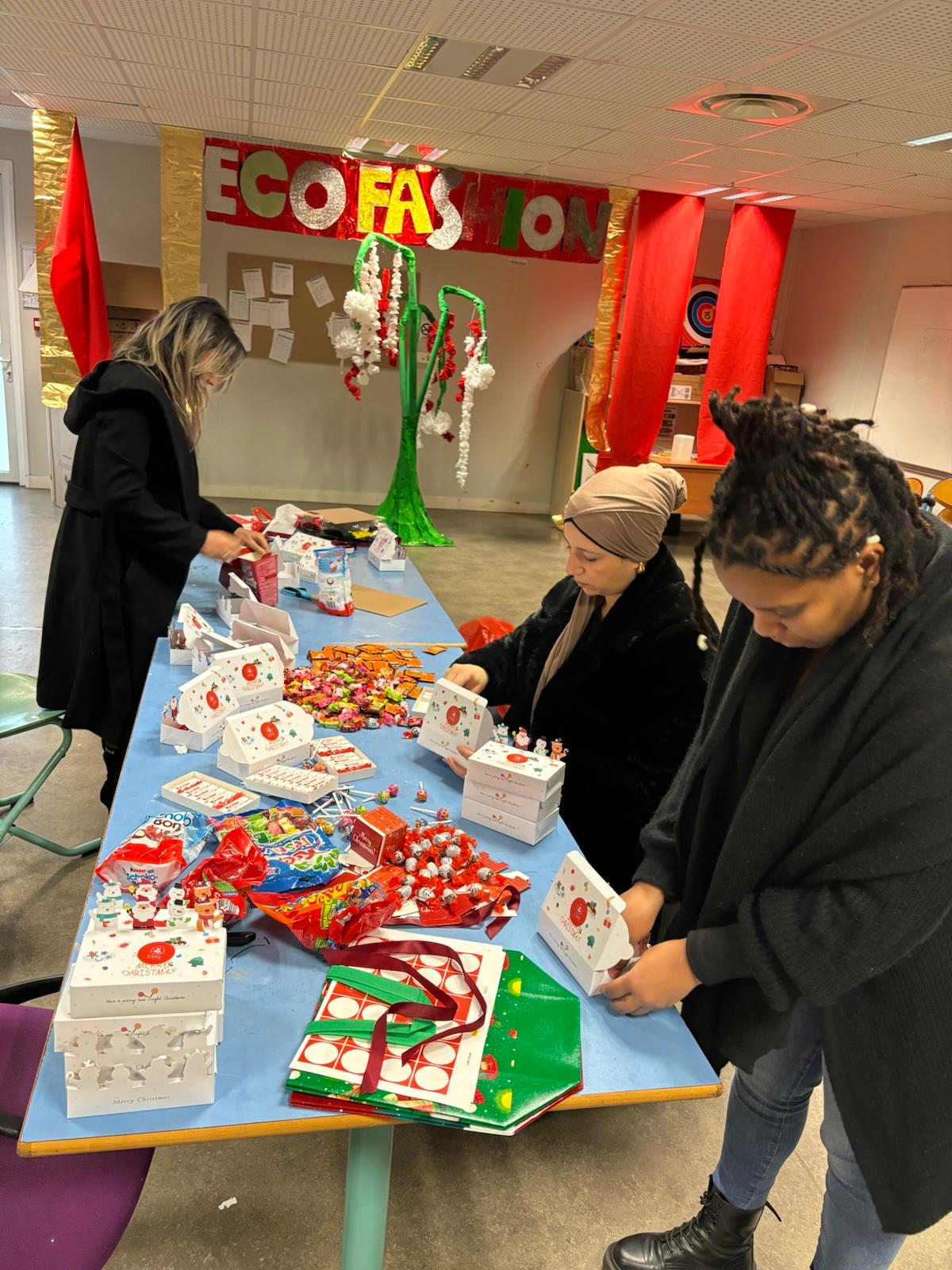 Cette année encore, nous avons fait fort en respectant notre petite tradition, à savoir la distribution des cadeaux 🎁 aux enfants à Noël. Je vous présente les mamans et les membres de notre association qui ont enfilé leurs bonnets de petits lutins et de mères Noël afin de préparer les boîtes de cadeaux pour nos enfants, tous les élèves de JLM, ainsi que pour nos enseignants, les animateurs et le personnel de service (cantine, Atsem et autres…). Et oui, CSPE n’oublie personne : tout le monde a eu droit à son petit cadeau de fin d’année.